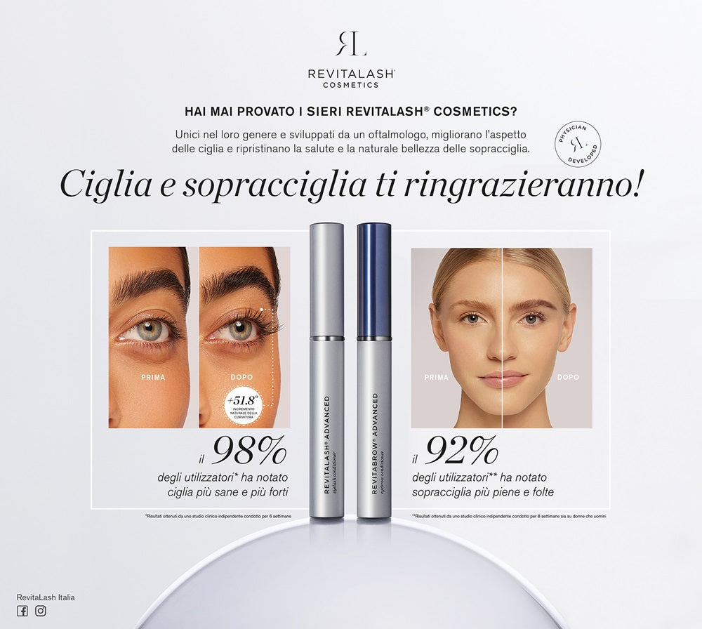 RevitaLash è un noto marchio specializzato nella cura delle ciglia e delle sopracciglia. I suoi prodotti, come il celebre siero per ciglia, sono formulati per migliorare l'aspetto e la salute delle ciglia, rendendole più lunghe, folte e voluminose. Con ingredienti naturali e clinicamente testati, RevitaLash offre soluzioni efficaci per ottenere ciglia più belle e seducenti. Scopri la gamma completa di prodotti RevitaLash per trasformare le tue ciglia e le tue sopracciglia.