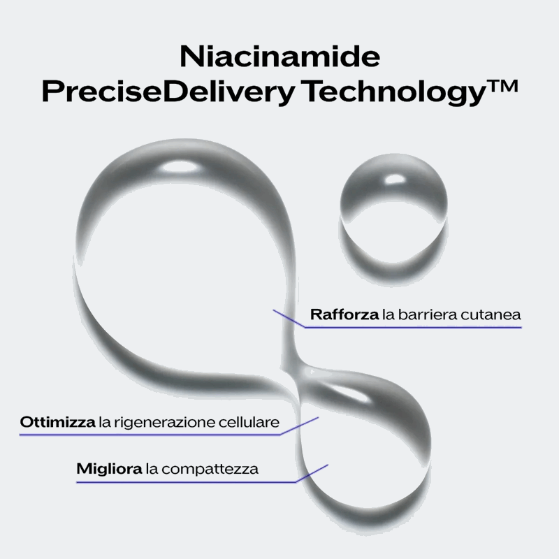 Rilascio mirato di Niacinamide a dosaggio preciso ed efficace.
