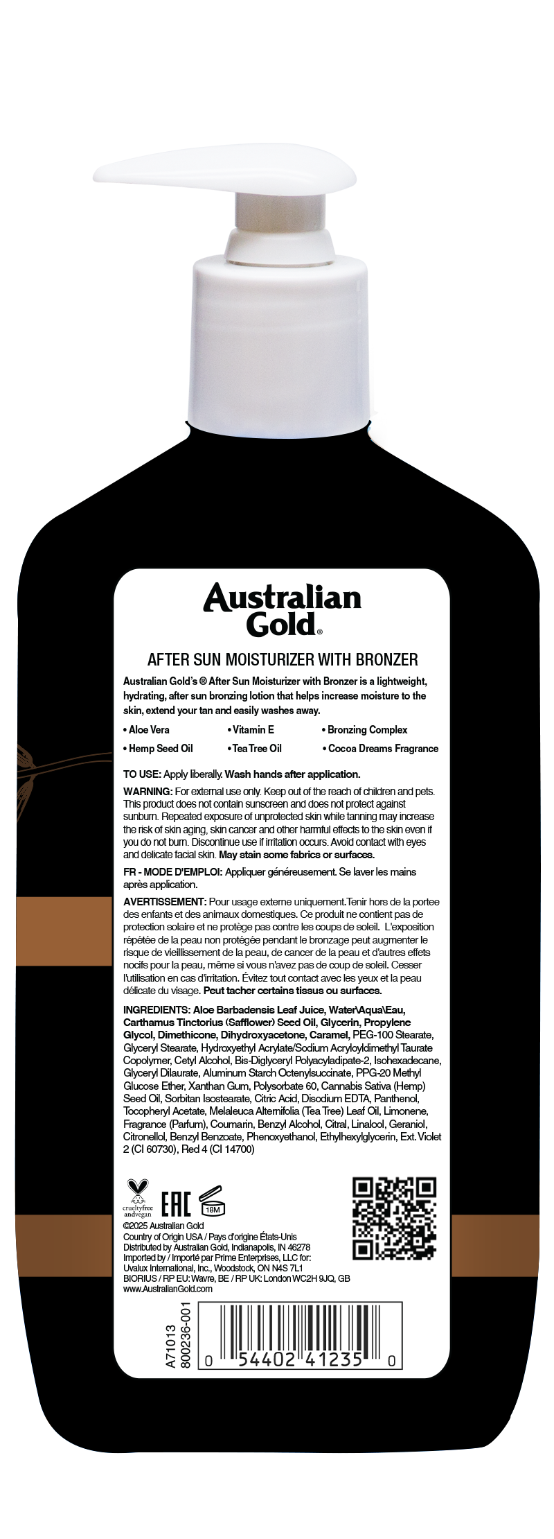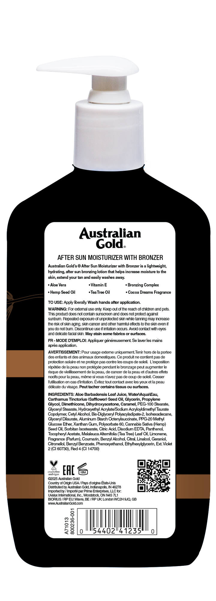 Dona alla tua pelle il meglio dopo l’esposizione solare: After Sun Moisturizer with Bronzer idrata, nutre e sublima l’abbronzatura con un effetto glow naturale. La texture leggera è arricchita con Bronzing Complex, che unisce Natural Bronzer per un colore superficiale immediato e autoabbronzanti che potenziano il tono anche in assenza di raggi UV.
